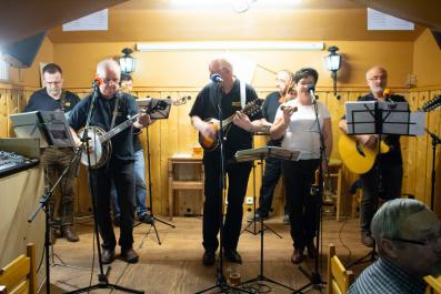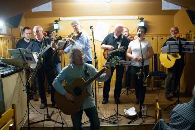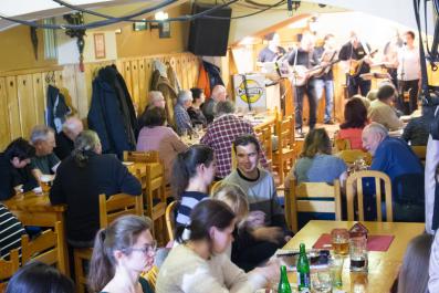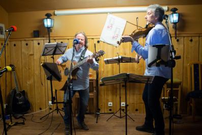 Kožený Hrdla hrály ve Vodárně oslabení nemocí klárinetisty H.S. Naštěstí kapela disponuje nejmodernějšími komunikačními kanály, kterými se online s nemocným HS propojila. Proto nejen Vinohradská Vodárna, ale i Motolský Chorobinec byly svědky Koženého triumfu, kořeněnému Moravským prvkem ve složení dvou semikožených východoúzemních instrumentalistů. |